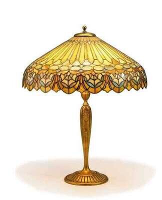 DUFFNER AND KIMBERLY (AMERICAN) Leaded glass and gilt bronze lamp