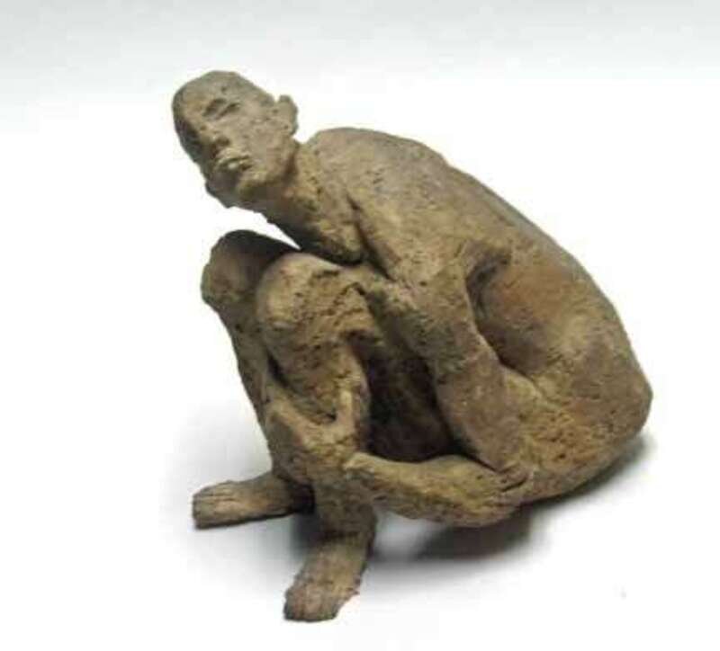 In the style of Ossip Zadkine, modeled as a crouching figure.