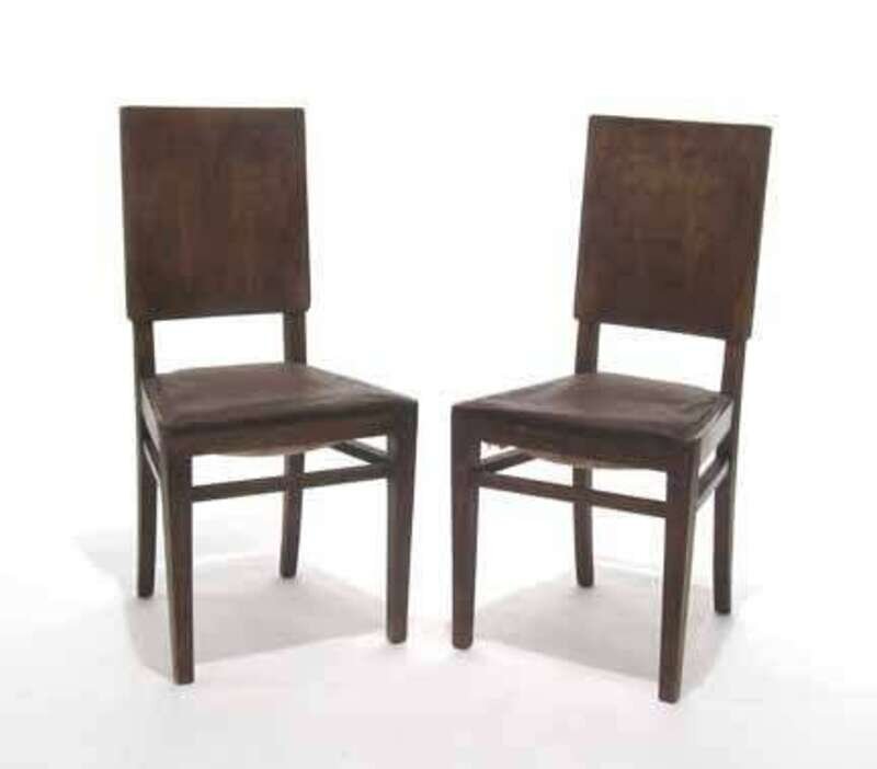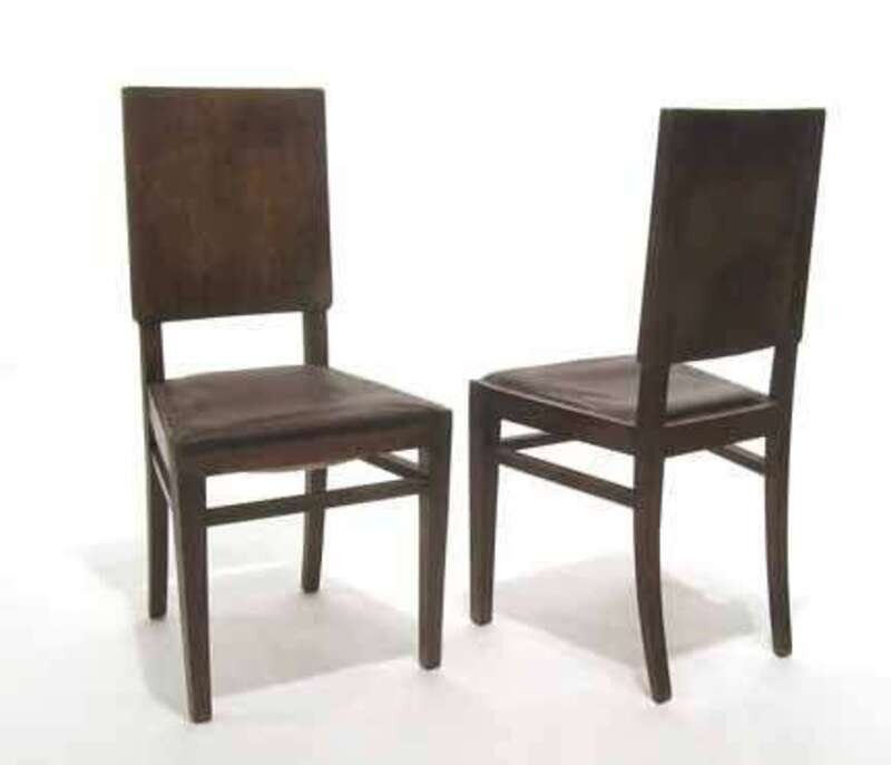 The rectangular backs over vinyl seats raised on tapered legs united by stretchers.