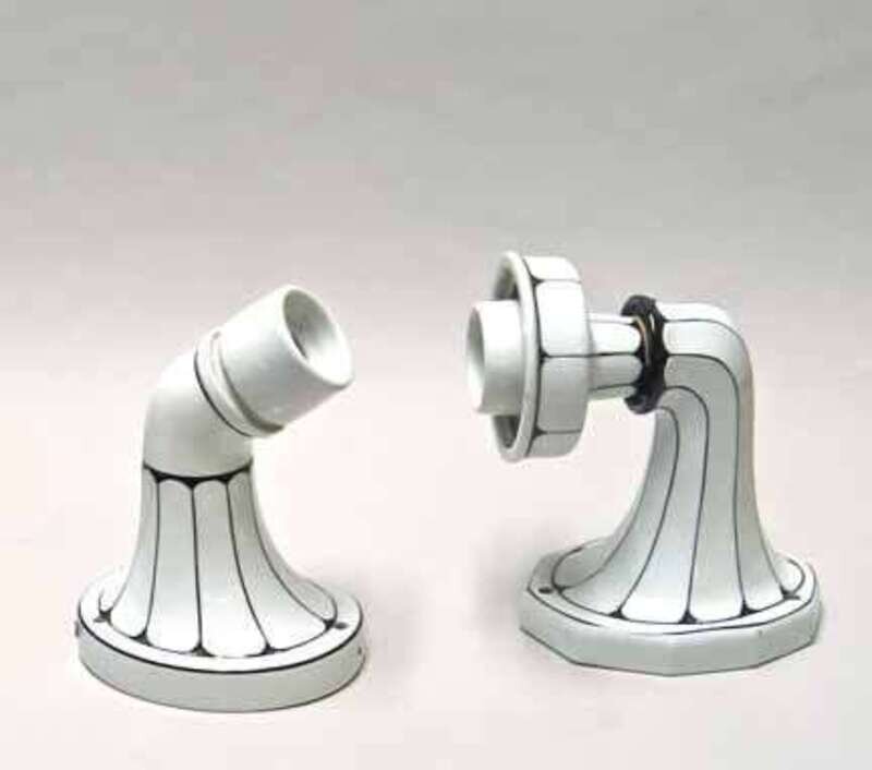 Each with faceted stems terminating in light sockets, stamped ges gesch marks.