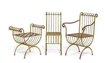 IN THE STYLE OF MATHIEU MATEGOT (FRENCH 1910-2001) Three piece gilded iron seating