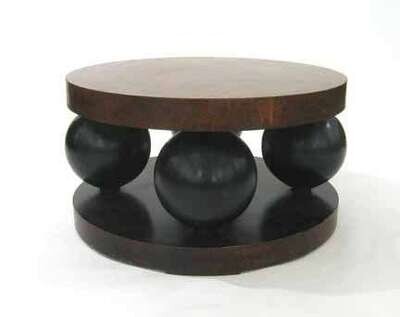 After a model by Robert Mallet-Stevens (French 1886-1945), the circular top raised on four globe supports and a further circular base.