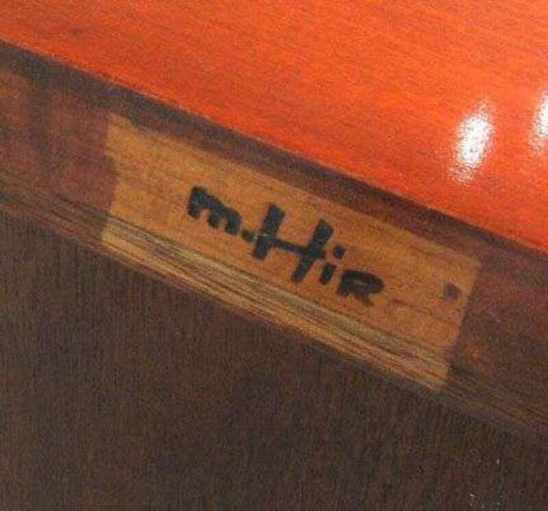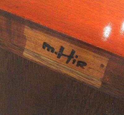 The rectangular top over three drawers and splayed legs, with M. Hirche branded signature.