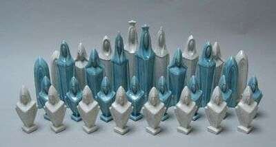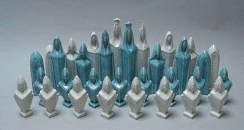 The cloaked figures with blue and white craquelure glaze, 32 pcs.