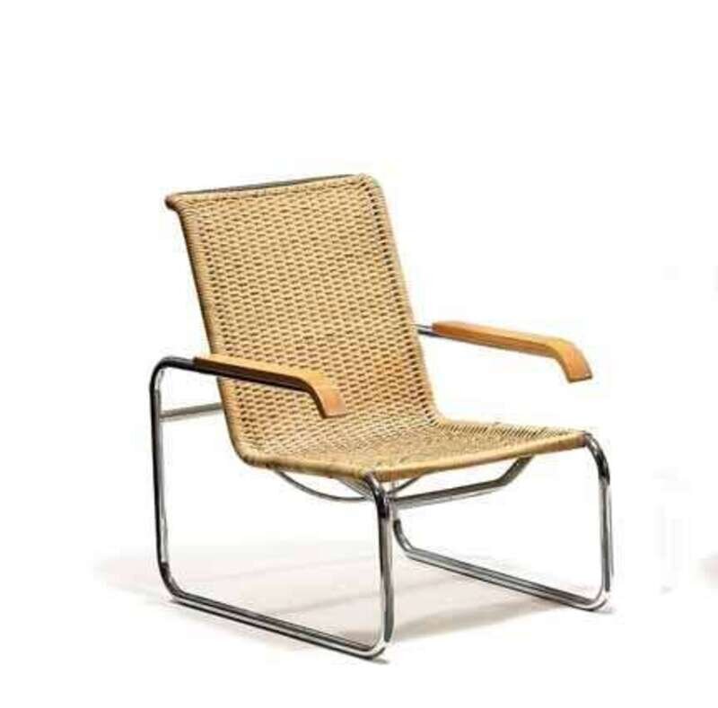 Originally designed 1928, manufactured by Thonet, tubular steel, wood and wicker, with Thonet, Germany label.