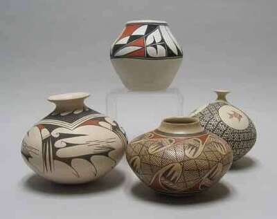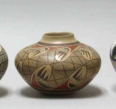 Together with two Vidal Corona pottery ollas and a HIB. Lente (Isleta Pueblo) pottery olla. (4)