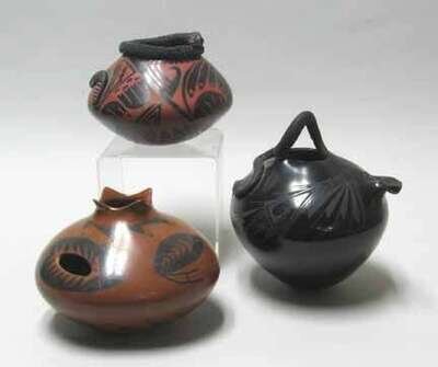 Together with two Casa Grandes pottery ollas, each molded in high relief with coiling serpents about the rim, one example signed Martha Quezada (H: 7 1/4 in), the other signed Manuel D*vz** .