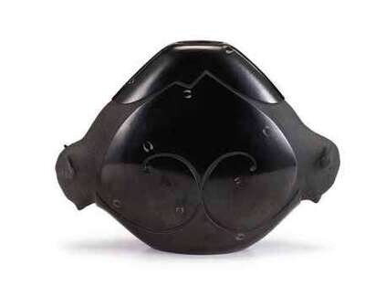 JEFF ROLLER (SAN CLARA PUEBLO) Double-Bull pottery olla