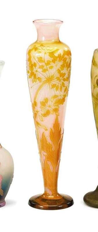 Early 20th century, with pink and amber overlays and floral decoration, signed in intaglio Galle.