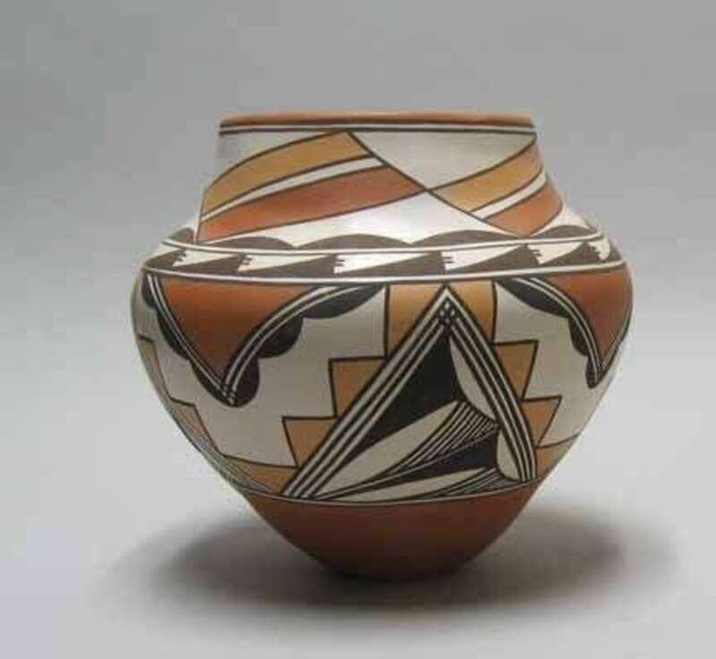 With an allover tan red and black geometric decoration, signed Sratyuwe G. Paquin, Laguna and dated 1992.
