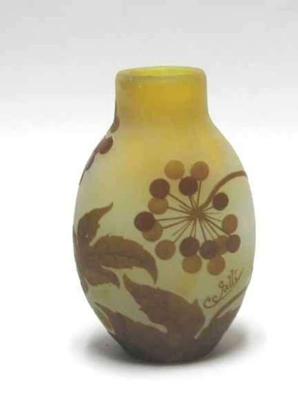 Early 20th century, with brown foliate decoration on a yellow ground, signed in cameo Galle.