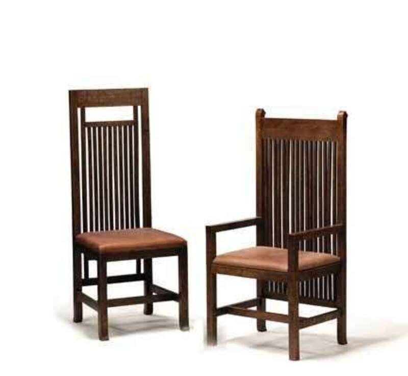 AFTER A DESIGN BY FRANK LLOYD WRIGHT (AMERICAN 1867-1959) Two armchairs and six side chairs