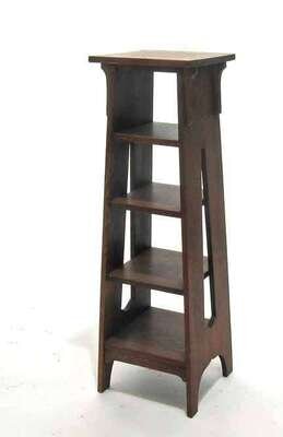 Early 20th century, oak, with four graduated shelves, paper label.