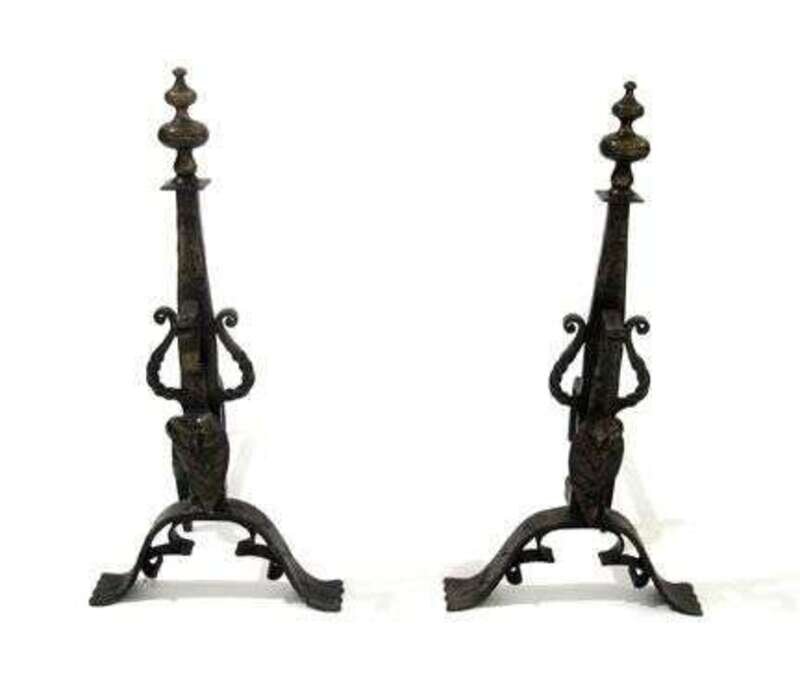 Pair of Arts and Crafts bronze andirons early 20th century