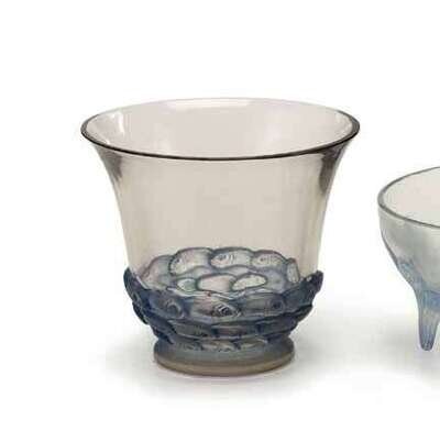 Marcilhac no. 1049, model introduced 1930, molded glass with blue patina, molded R. Lalique.