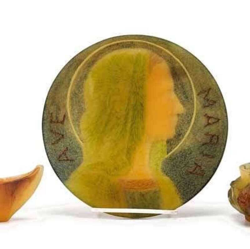 JEAN-BERNARD DESCOMPS (FRENCH) Pate-de-verre plaque, Ava Maria