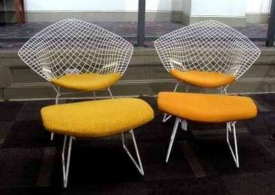 HARRY BERTOIA (AMERICAN 1915-1978) Two 'Diamond' chairs with ottomans