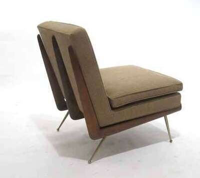 Model N-71 circa 1954, birch supports on brass legs with upholstered cushions.