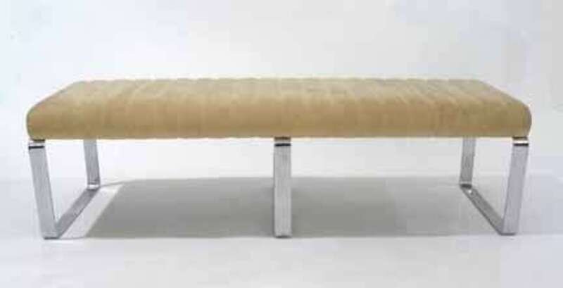 Three chrome U-form legs and an overstuffed upholstered seat.