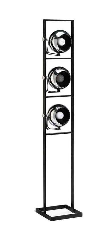 Mid 20th century, three adjustable chrome fixtures in a black metal frame, stamped Made in Italy.