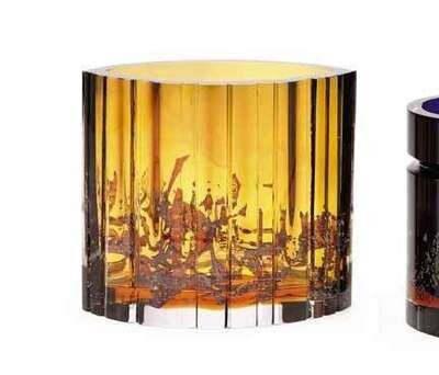 1969, yellow cased glass with embedded silver, blown and hot worked, cut and polished, signed Hlava, Czechoslovakia.