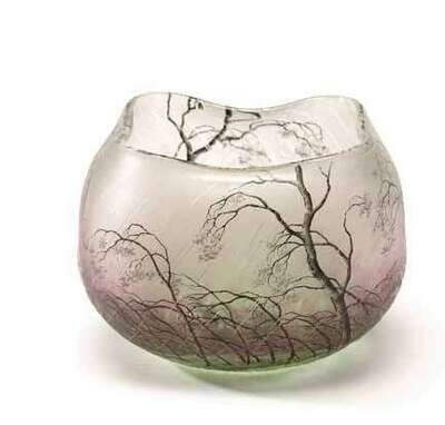 Circa 1910, with 'Rainy Landscape' decoration, signed Daum Nancy with Cross of Lorraine.