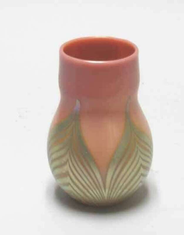 1978, with pulled feather decoration on a pink ground, signed Charles Lotton, 1978.