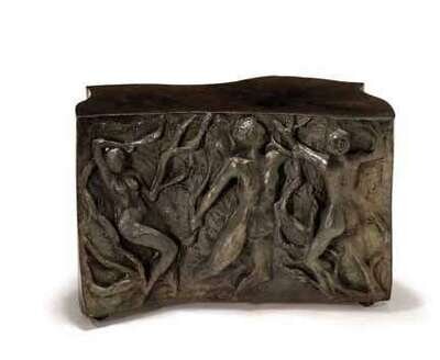 Circa 1968 single commission, relief molded bronze, etched Philip and Kelvin Laverne.