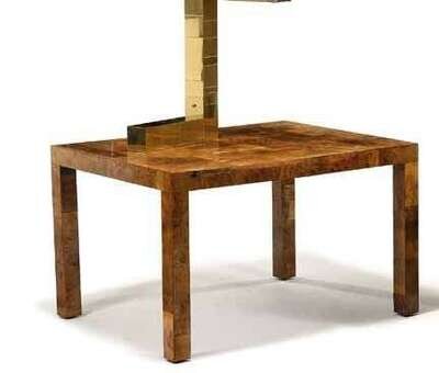1975, olive wood veneer, with a single drawer, with Paul Evans Original label.