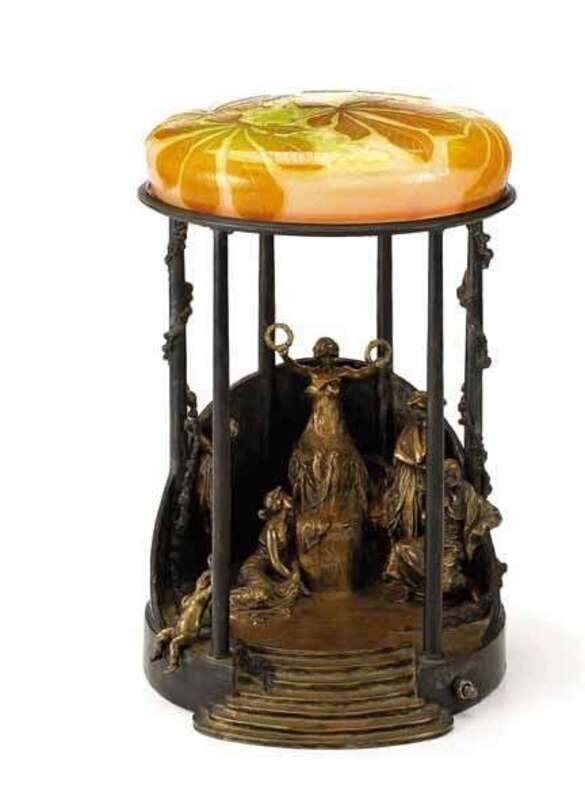 GALLE (FRENCH) Austrian bronze with cameo glass shade
