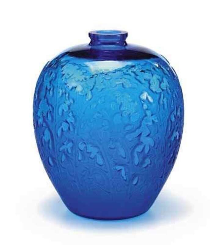 Marcilhac no. 902, model introduced 1921, molded blue glass, etched Lalique France.