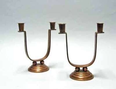 DANISH DESIGNER Pair of two-light candelabra