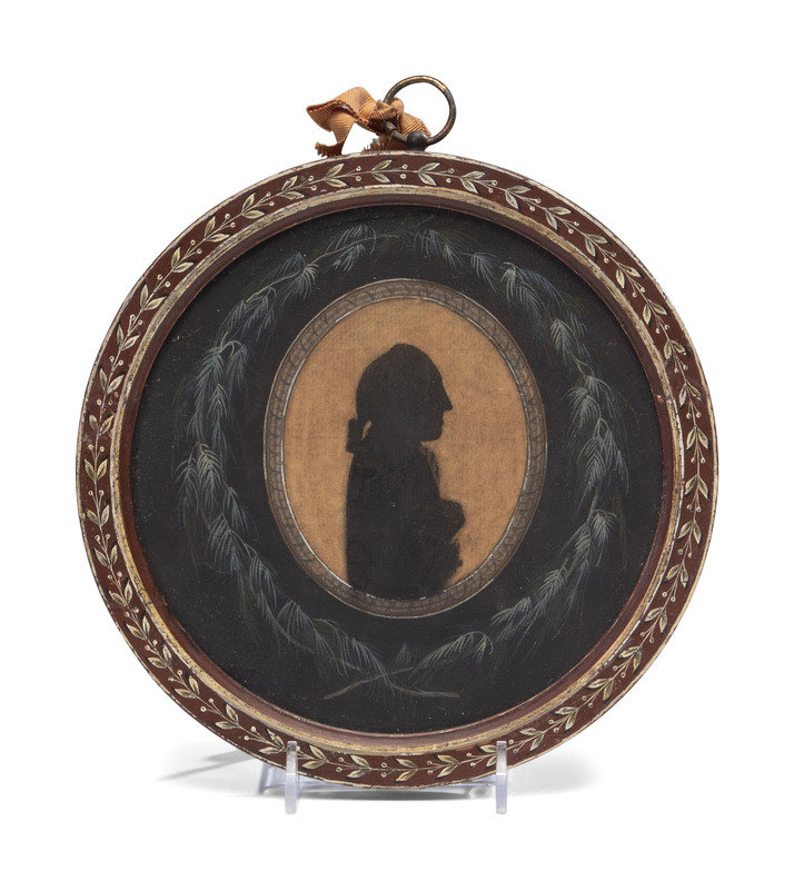 A near identical example of this portrait was auctioned by Phillips in 2000, before which it was included in the Ketteringham Hall Sale, 1947. As the Phillips catalogue indicates, Harrington occasionally produced silhouettes painted on paper, as opposed to her usual cut-paper technique.