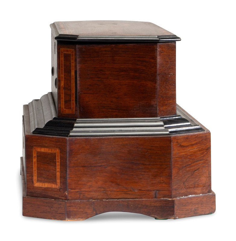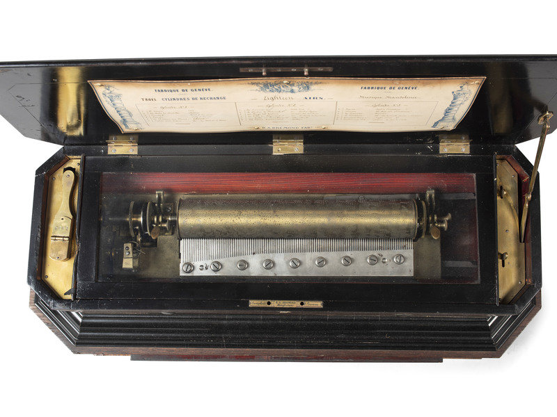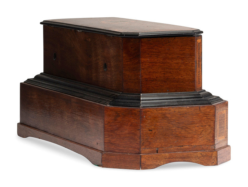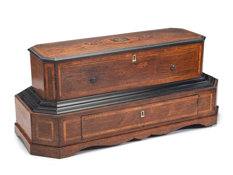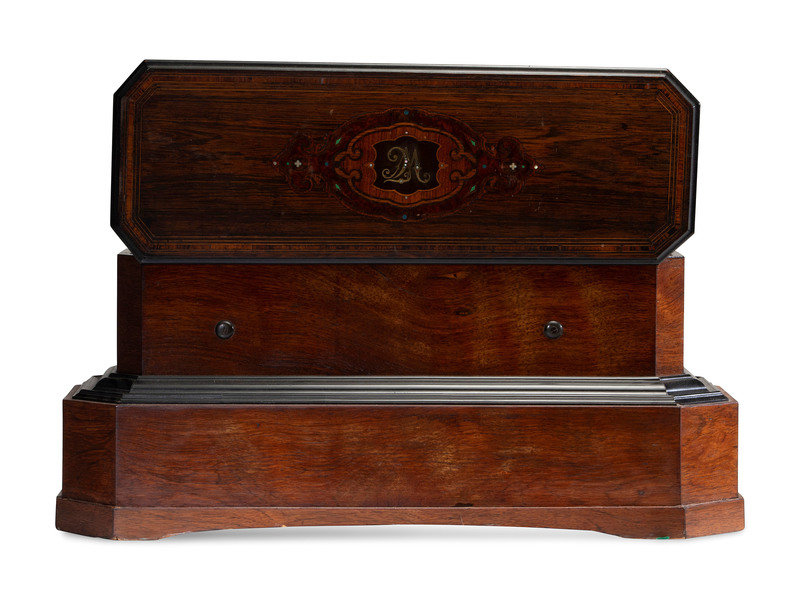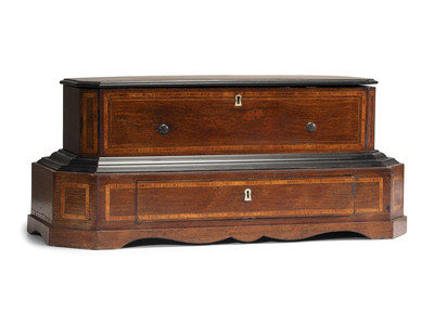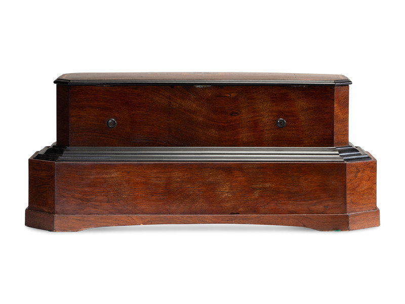 A Swiss Inlaid Mahogany Three-Cylinder Music Box