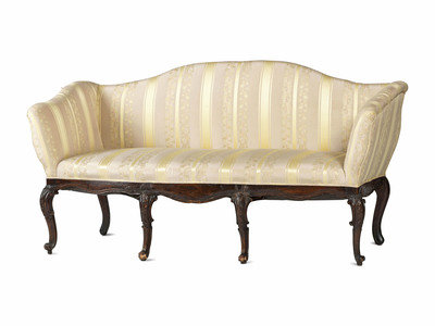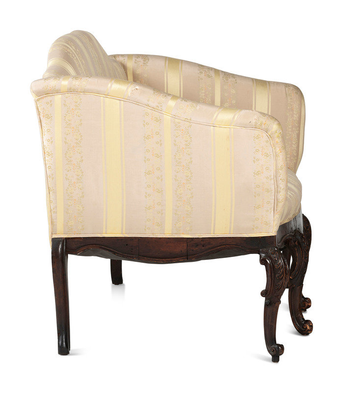 An Italian Carved and Black Painted Walnut Upholstered Sofa