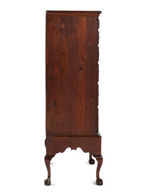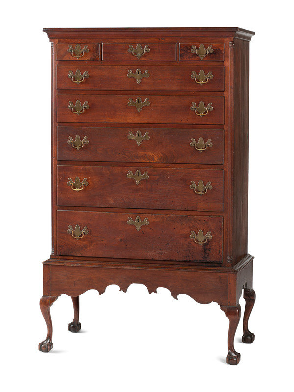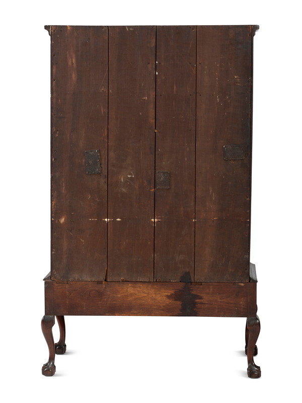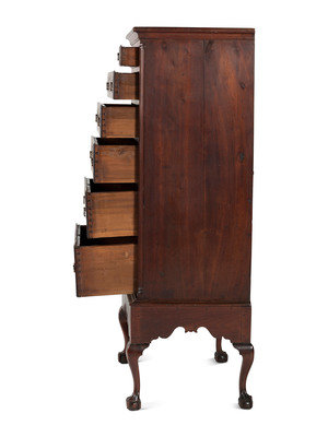 A Chippendale Carved and Figured Walnut Chest on Claw-and-Ball Foot Stand