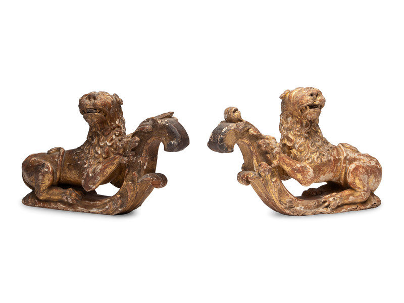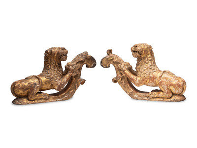 A Pair of Regency Giltwood Lion Mounts