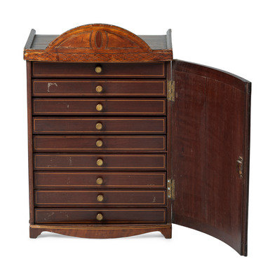 A Regency Inlaid Mahogany Bowfront Collector's Cabinet