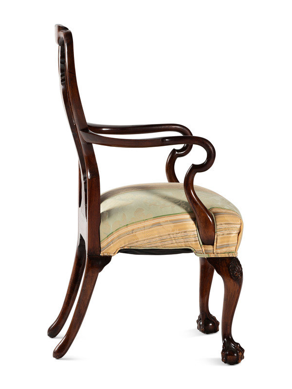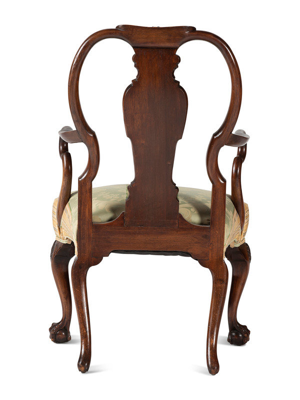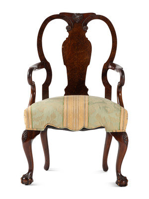 A George II Style Burl-Walnut Shepherd's Crook Claw-and-Ball Foot Armchair
