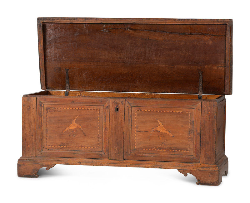 A Poplar and Pine Hummingbird-Inlaid Blanket Chest