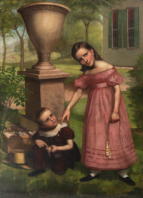Portrait of Two Children with a Doll and Jump Rope