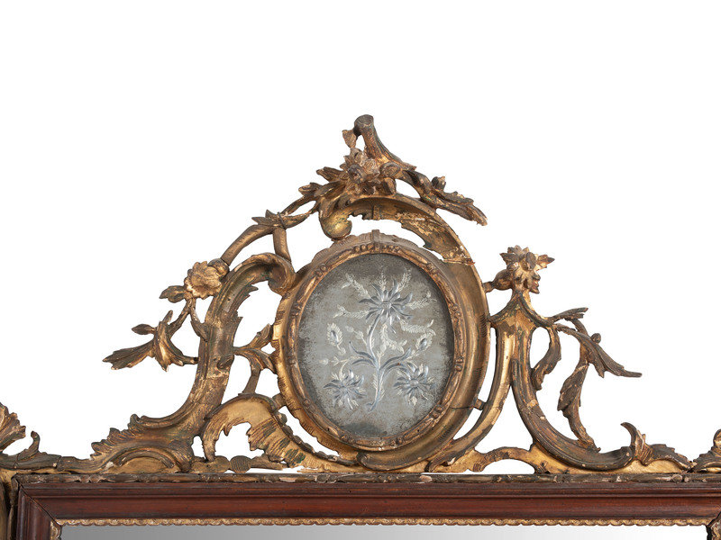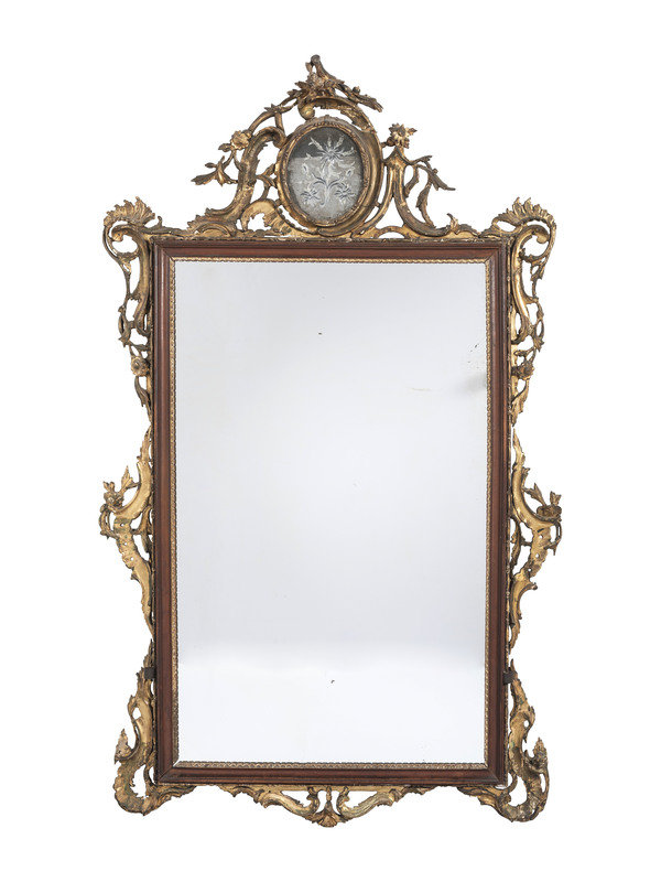 A Chinese Chippendale Giltwood and Etched Mirror