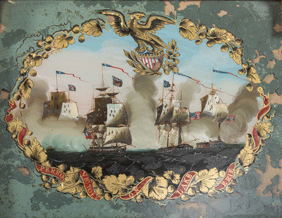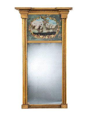 A Federal Giltwood and Eglomise 'Perry's Victory on Lake Erie' Mirror