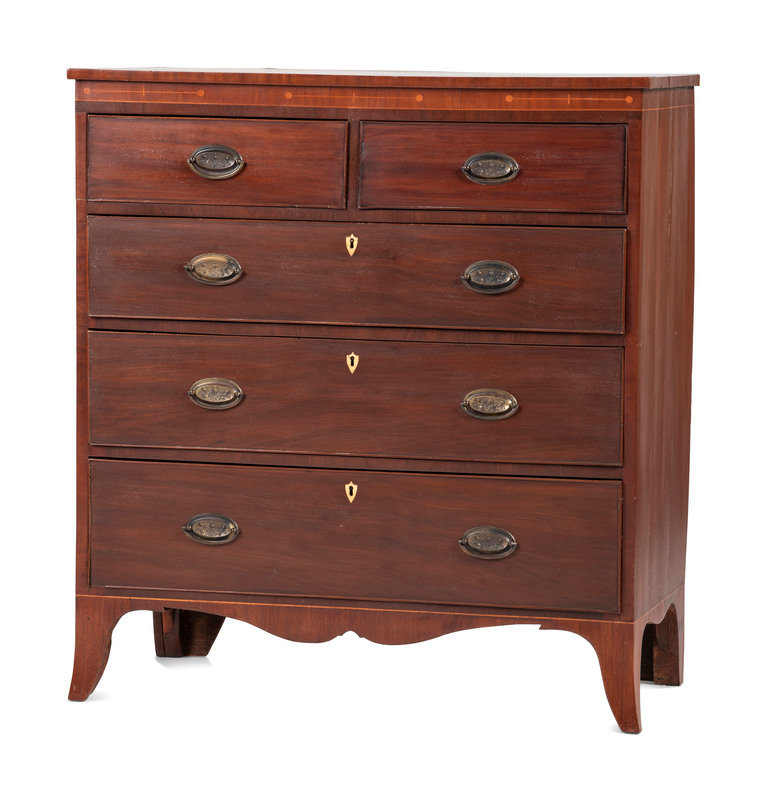 A Federal Inlaid and Veneered Mahogany Chest of Drawers