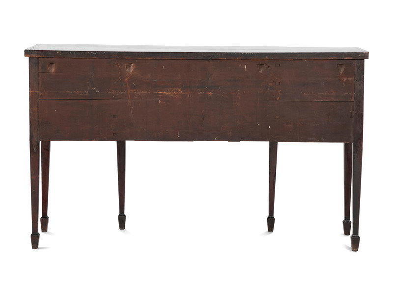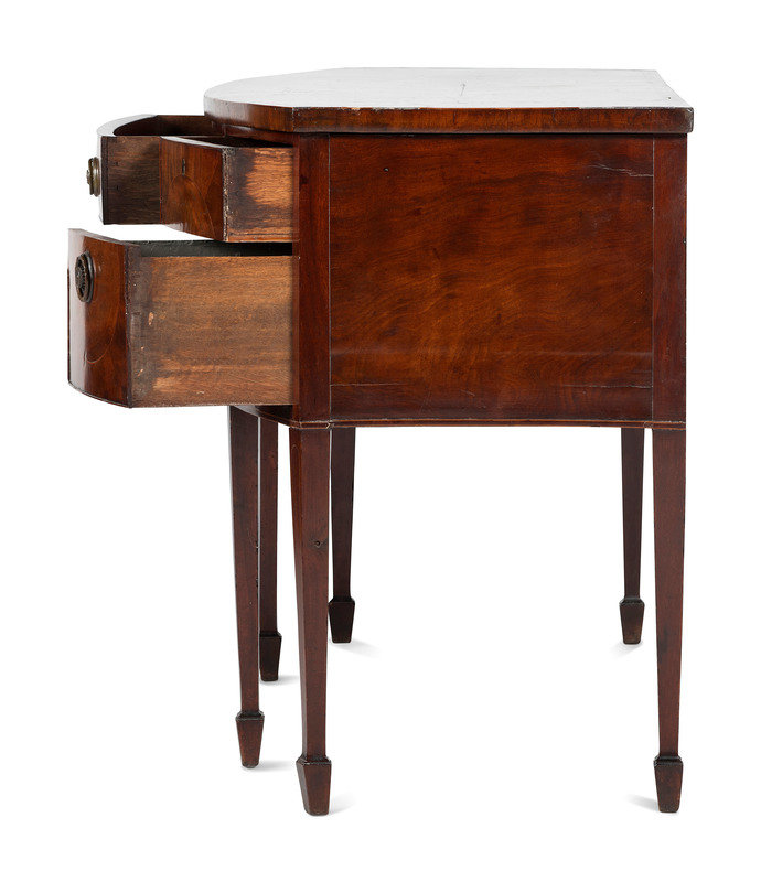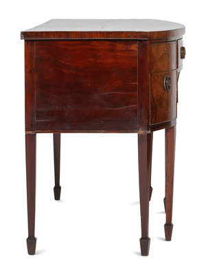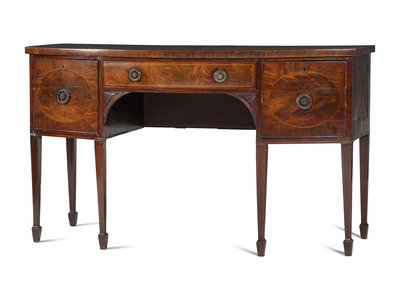 A Regency Carved, Inlaid and Figured Mahogany Bowfront Sideboard