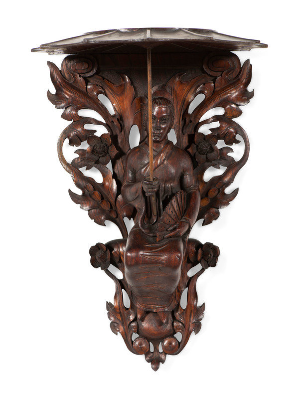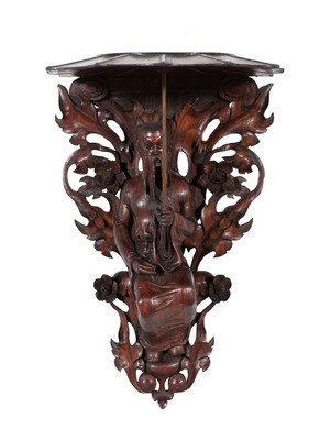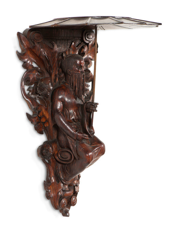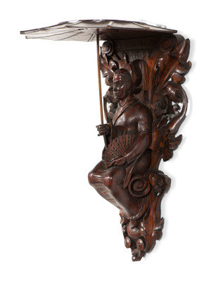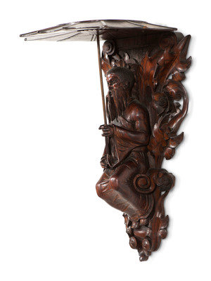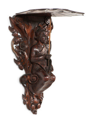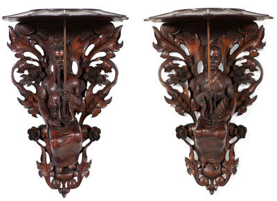A Pair of Carved Oak Figural Wall Brackets