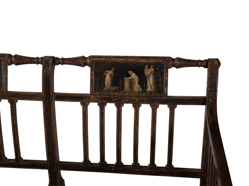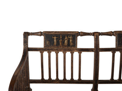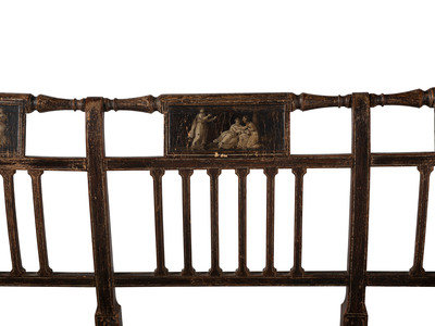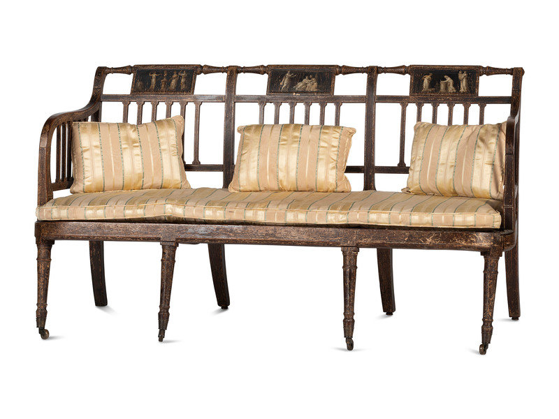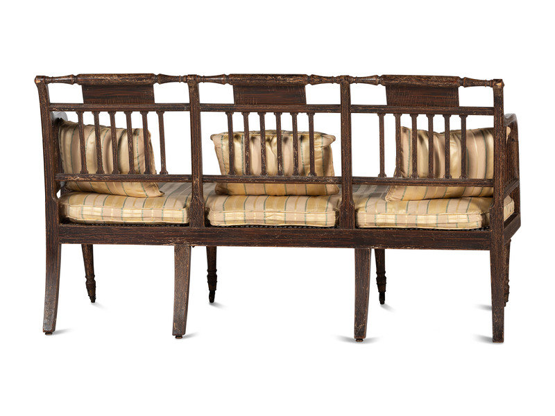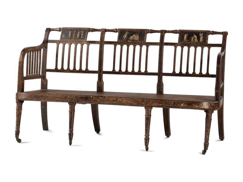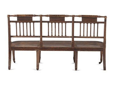 A Regency Grain and Figural Painted Cane-Upholstered Settee