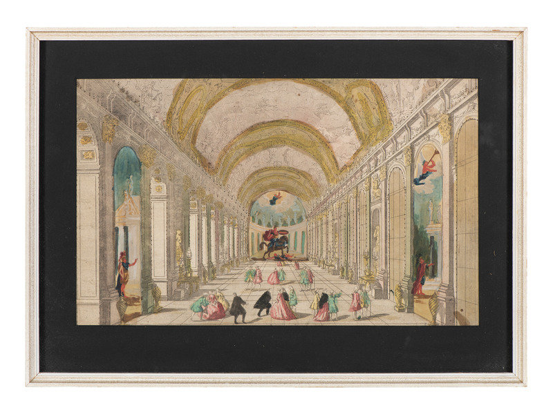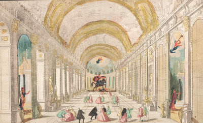 depicting a palace hall, possibly Versailles.