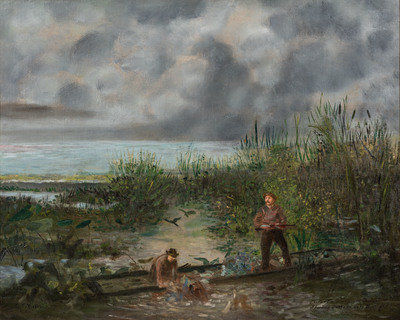 Charles Fleischmann and Charles T. Webber Shooting Ducks on Lake Michigan