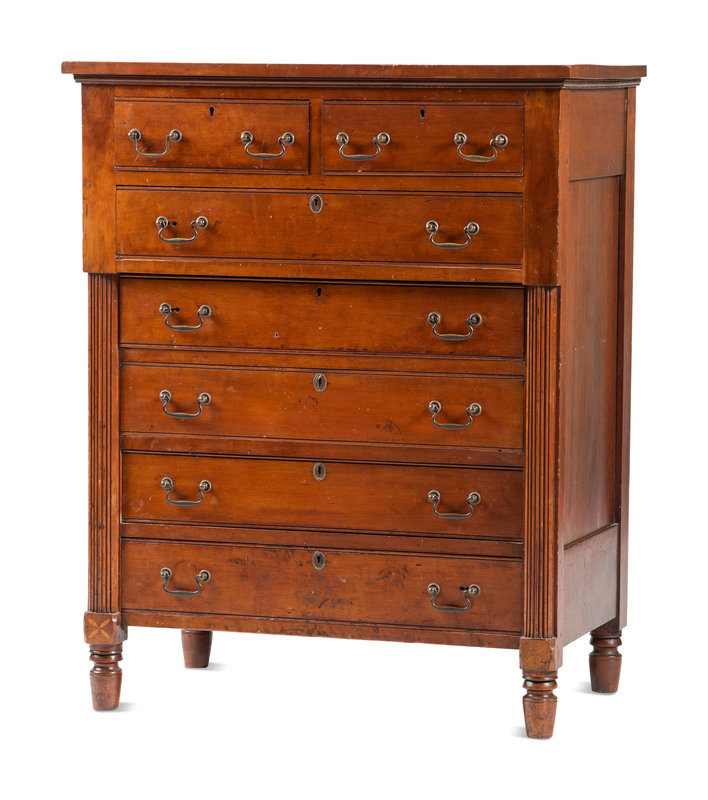 A Federal Carved and Inlaid Cherrywood Chest of Drawers